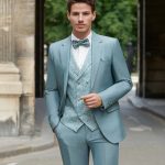 Le Costume de mariage BOSTON vert, vous séduira par son style bohème, et en même temps classique. La veste est surpiquée.
