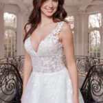 Avec cette robe de mariée, nous pouvons assortir les accessoires nécessaires suivants : le jupon, les chaussures que avons encore en boutique, les mitaines ou bien les gants, la lingerie comme le slip, le string ou le boxer, les bas. Egalement le voile, les accessoires de cheveux comme les peignes avec les perles ou les brillants, les diadèmes, les tortillons (les curlies) les fourches, les pics ou encore les épingles. Et aussi les serres-têtes et l’étole.
