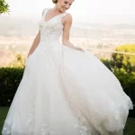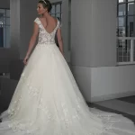 La Robe de mariée Poppy est de forme princesse. Elle a de larges bretelles qui couvre bien le haut en forme de V.